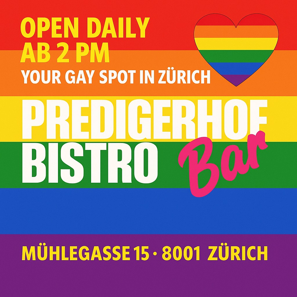 Mitten in Zürichs Altstadt erwartet dich die Predigerhof Gay Bar – ein gemütlicher und offener Ort für alle, die Lust auf gute Drinks, entspannte Atmosphäre und spannende Begegnungen haben.